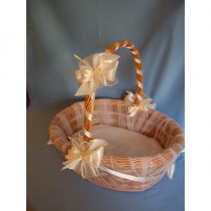 Кошница от естествени материали украсена с тюл, сатенени и органзени панделки.